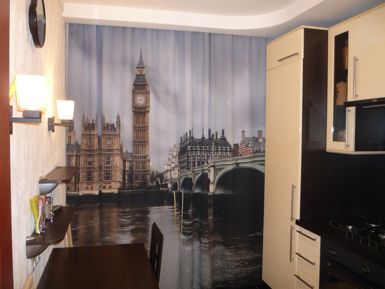 По поводу фотоштор подумайте. Может интересно смотреться. У меня одна девочка брала под скиналь шторки, пишет,что пространство стало зрительно больше на маленькой кухне.