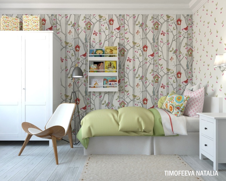 Основная мебель проекта IKEA серия ХЕМНЭС.Обои borastapeter коллекция lilleby.