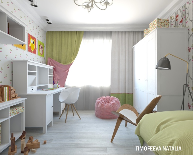 Авторские проекты дизайнеров.(Посты не по теме будут удаляться!)Дизайн детской комнаты 15 кв.м. Светлый и уютный интерьер для девочки дошкольного возраста....