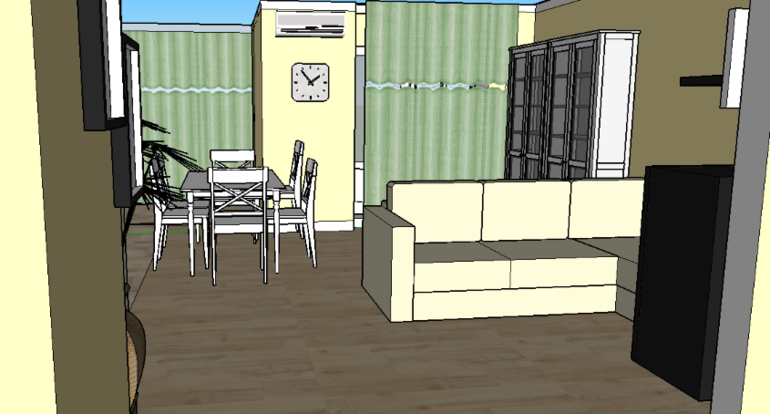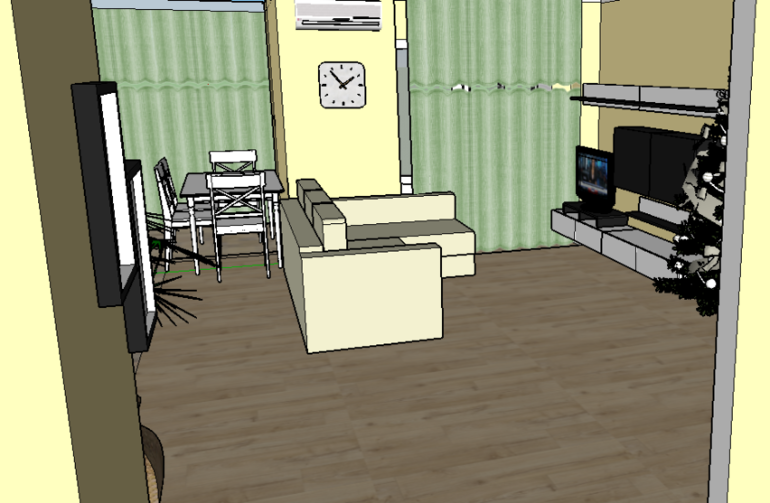 эта зона хорошо просматривается от входа, поэтому она должна выглядеть симпатично. ВЫ можете в том числе поставить кресло небольшое и столик кофейный