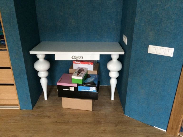 Столик на заказ делали, туалетный столик. Он не особо маленький 120 на 50 вроде