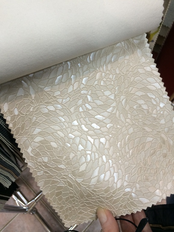 Мне кажется кожа больше подойдёт, багет по цвету может и подходит к светильникам но вот по стилю Вашей спальни не очень