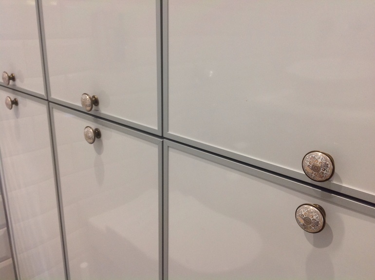 Фасады глянцевые.ручки покупала в Zara home отдельно и пролетела с цветом.есть идея перекрасить их сбоку где латунь.