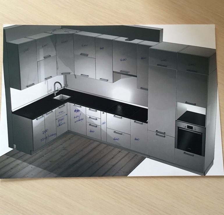 А мне бросились в глаза верхние ящики... была похожая проблема надробденности. Визуально, чтобы скрыть ее, приняли решение отказаться от ручек в верхних ящиках. Ручки оставили только в нижнем ряду верхних ящиков. Остальные - механизм Push up. Мне кажется, что для Вашего проекта это было бы неплохим решением. Кухня "вытянется", визуально не будет резать глаз это горизонтальное деление.