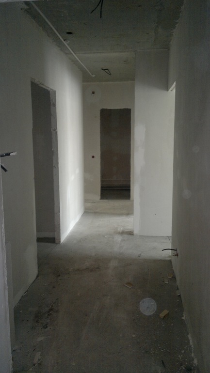 Коридор у вас не такой уж узкий. Сейчас он визуально кажется уже из за того, что квартира не отделана! Это уже давно замечено, человек заходит в квартиру без отделки и она ему кажется на много меньше.
