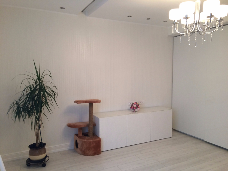 Ламинат во всей квартире Villeroy & Boch "Current Oak" с четырехсторонней фаской. Сразу отвечу на вопрос про маркость ламината - следы от лап видны, но не так как на темном! Да и шерсть от животных не так видна. Естественно, ежедневную уборку никто не отменял, но по крайней мере это не так сильно в глаза бросается.