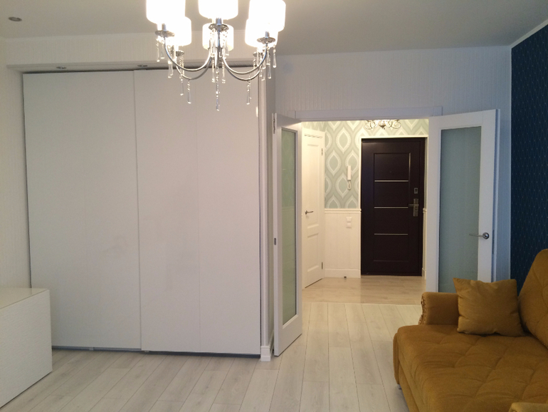 4. Так как от домашних животных в любом случае образуется безумное количество шерсти то чтоб она не скапливалась на шкафах в спальне и гостиной были сооружены специальные ниши, куда эти шкафы прекрасно вписались.
