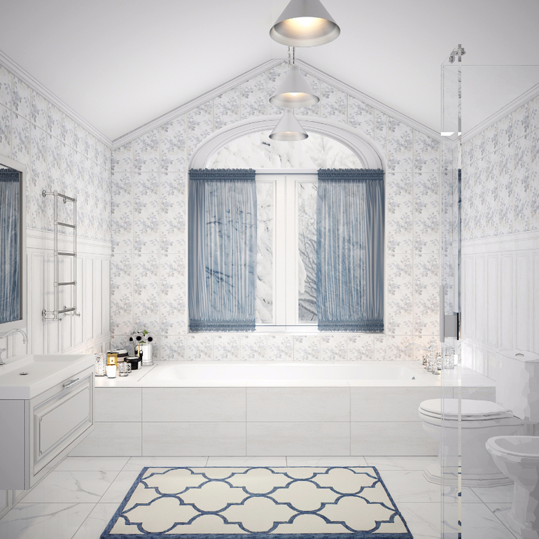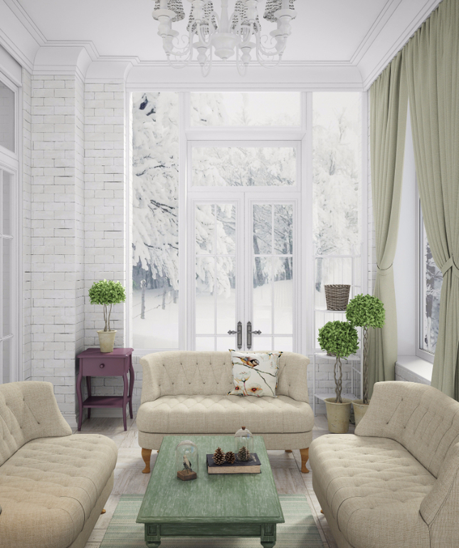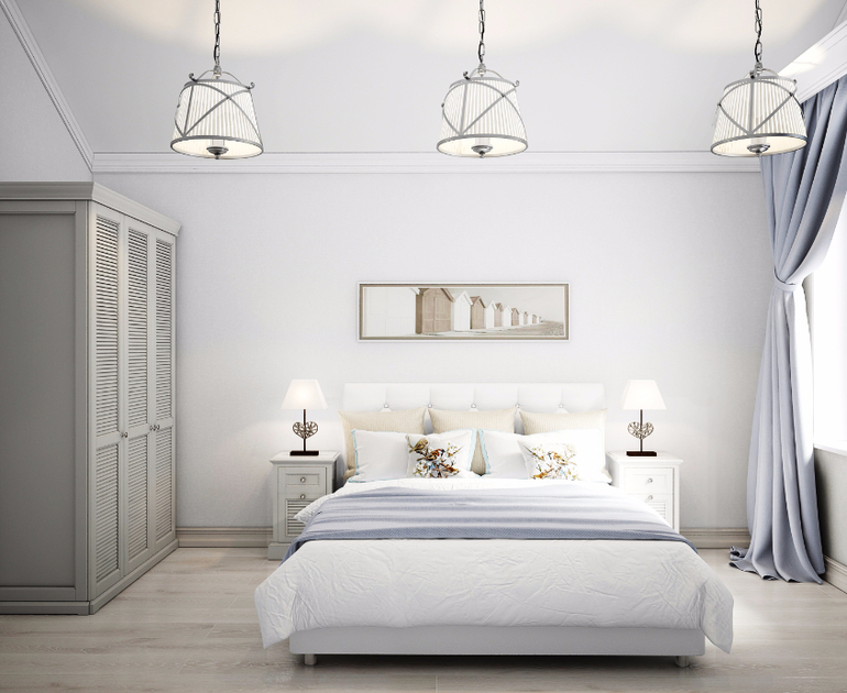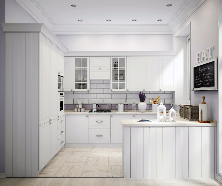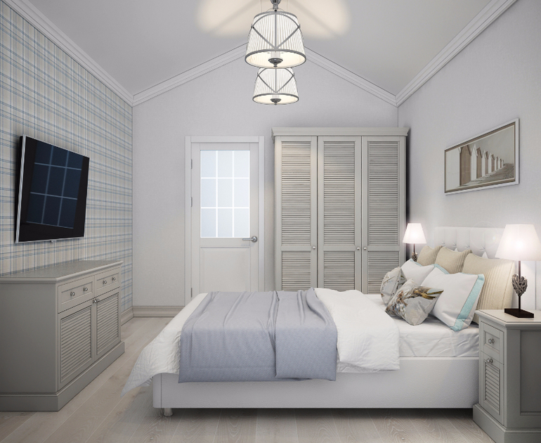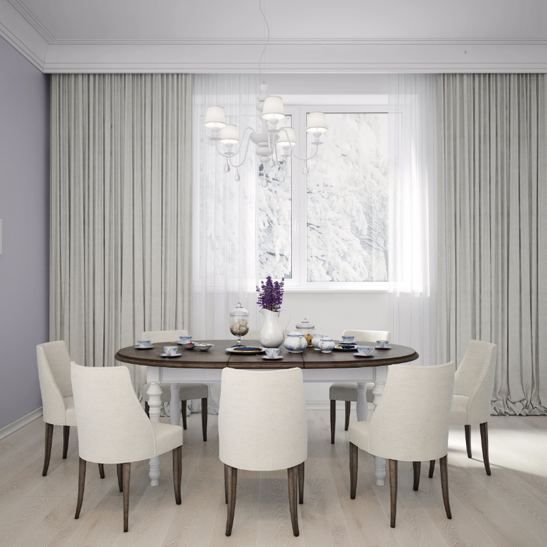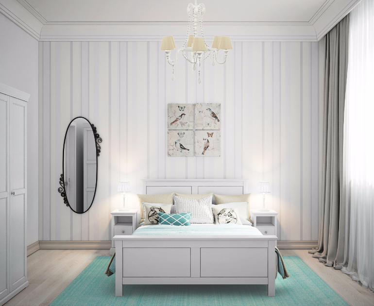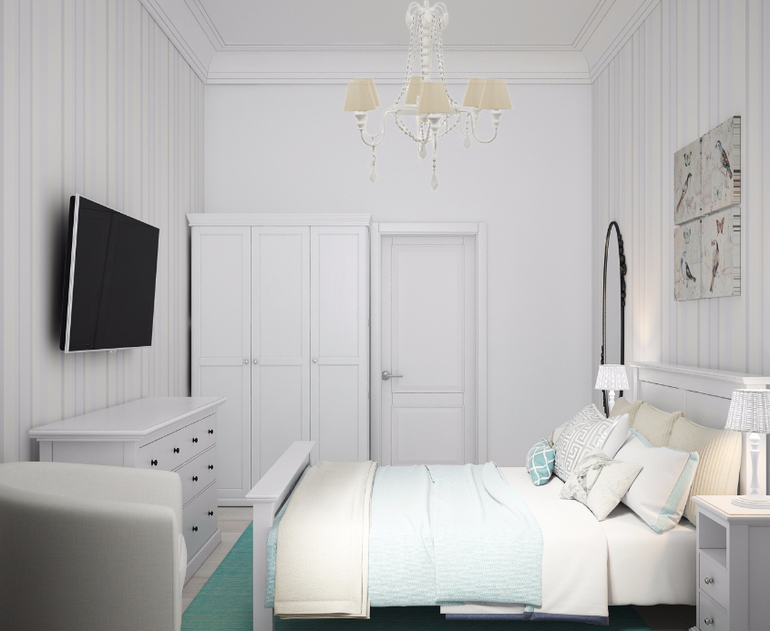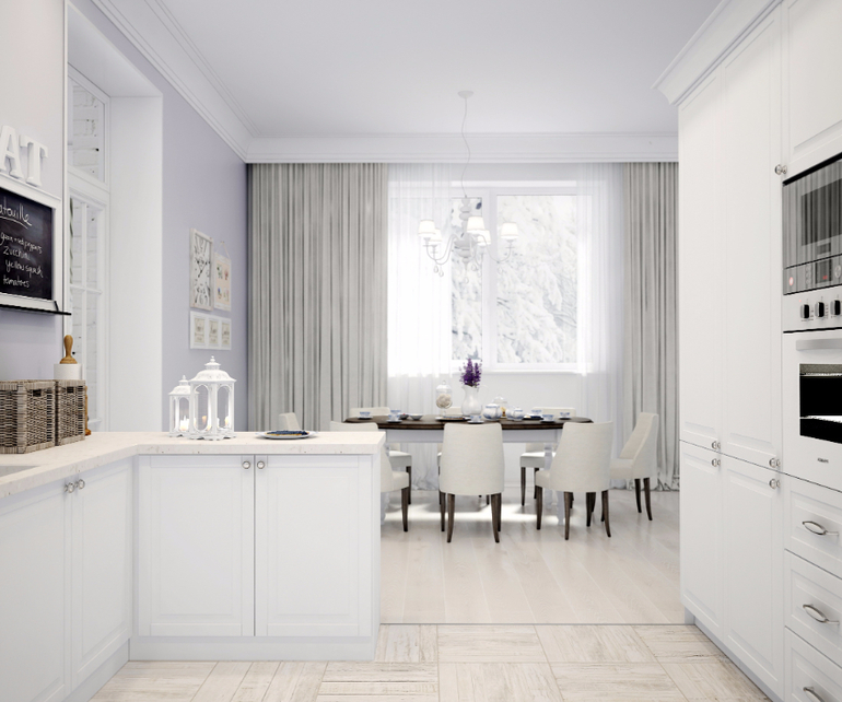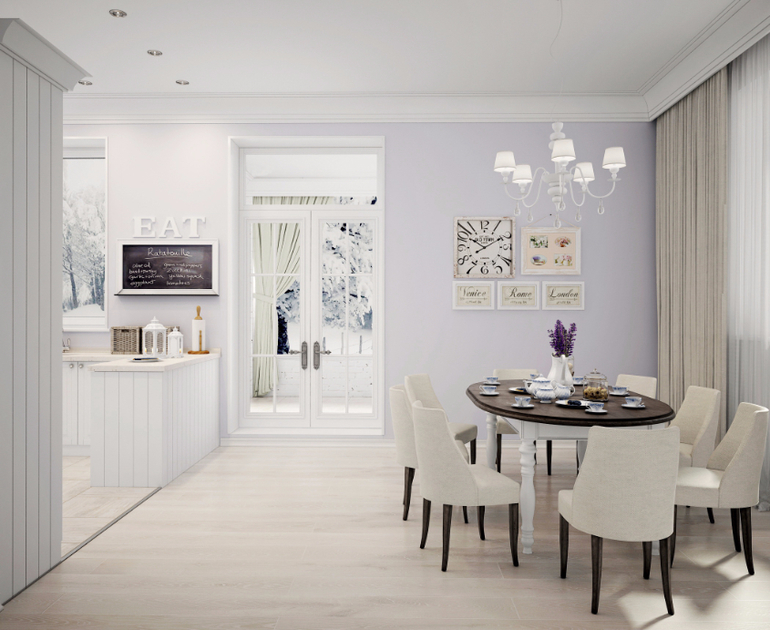 Интерьер выполнен в стиле прованс, при этом упор на свет и чистоту. Такой вот облегченный вариант, без переизбытка деталей.