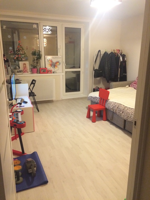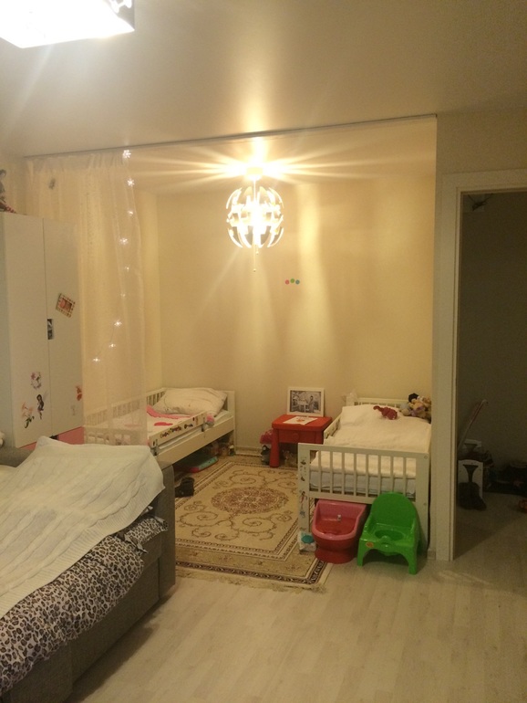 мне вот тоже скоро придется в однокомнатную с таким же составом переезжать, уже всю голову сломала, как все разместить. Пока в планах только двухярусная кровать с диваном внизу, А у вас сколько места осталось в комнате для взрослой "зоны", детская классная получилась!