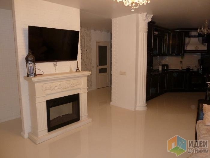 Тоже очень нравится белый глянцевый пол. Видела живые фото на сайте вдолевке. Но это был не ламинат, а наливной пол. И здесь мне кажется наливной. У меня в закладках гостинная с белым глянцевым плиточным полом