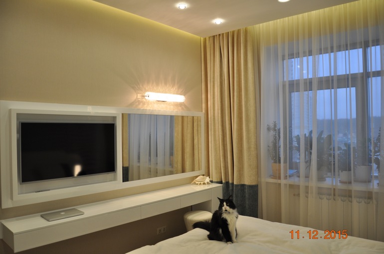 Спальня - стала причиной почему рассталась с первым дизайнером. Было потрачено два месяца - но я не получила желаемого результата. Расстроенная, отчаявшаяся, я снова принялась за поиски профессионала. Судьба мне улыбнулась в образе дизайнера Светланы, с которой я познакомилась благодаря данному сайту. До сих пор удивляюсь как она четко поняла что же я хочу.. Визуализация спальни была утверждена с первого раза без малейшей правки с ликованием в душе, ну а позднее под строгим авторским надзором дизайнера реализована.