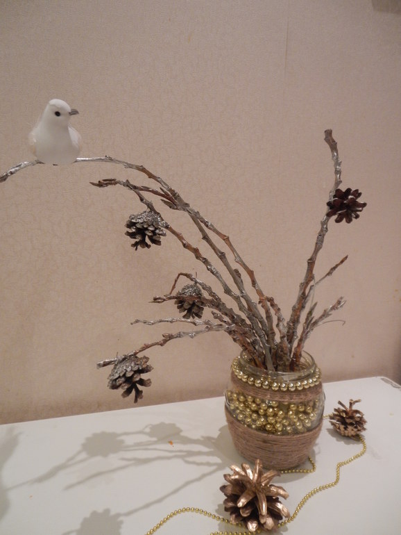 А такой букетик называется "Я его слепила из того что было". Ветки хочется по роскошнее найти,но времени нет пока.