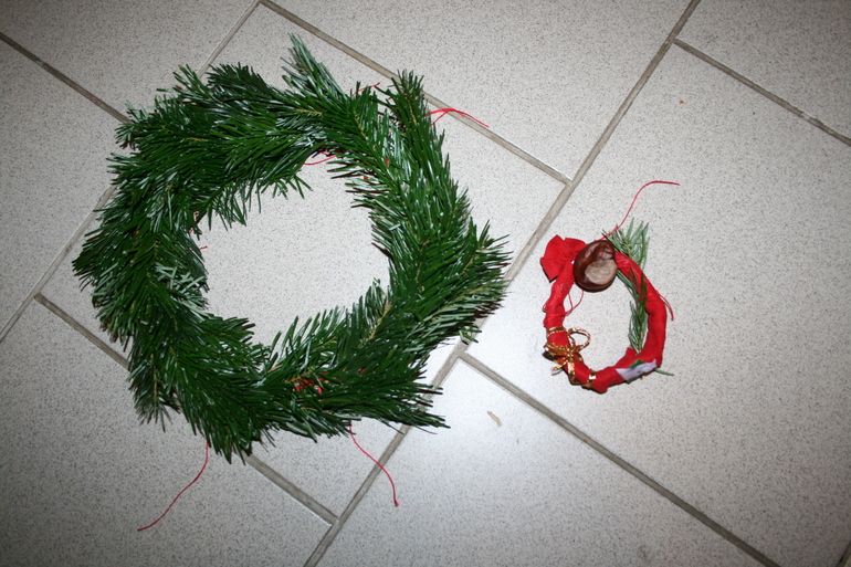 А в этом году не повезло, пустая оказалась. Пришлось срочно придумывать альтернативное развлечение детворе.По старинной традиции венки вешали над дверьми и у входа, чтобы отвратить нечистую силу или уничтожить недобрые помыслы злого человека или человека с "нехорошим глазом". Мы никого уничтожать не планировали. Ветки, оставшиеся после обрезки ёлки, в том числе. Поэтому решили украсить свой дом таким традиционным способом. Хотя сейчас он очень активно используется в СШП, а у нас, к сожалению, почти забыт.