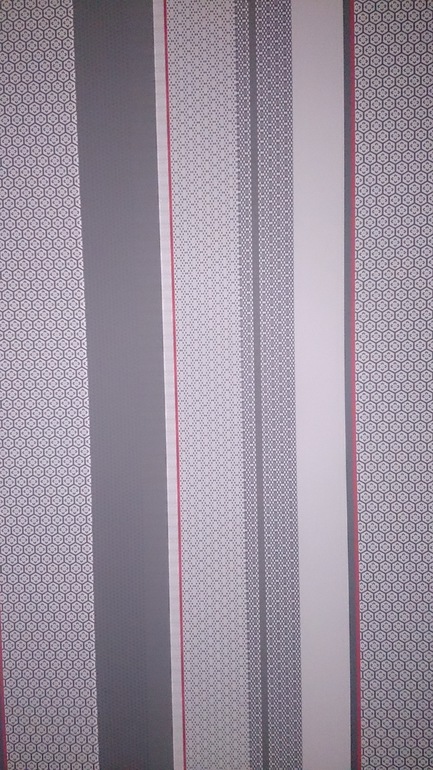 Обои симпатичные, но поклеены так, что немного сужают стену. Горизонтально было бы получше. НО! Это не критично. Думаю, если заменить шторы (хотя и очень "вкусный" цвет, но выбивается), то было бы всё прекрасно. Цвет штор - серый с одной неширокой вертикальной фиолетовой полосой.