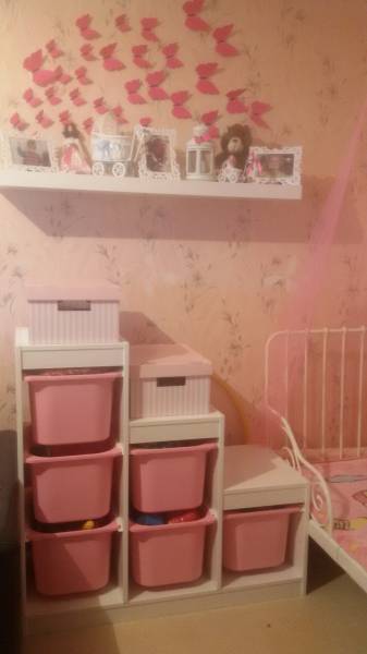 Интерьерное решение детской комнатыДевочки,выбираю системуТруфаст для дочки.Надеюсь все же упорядочить игрушки.Остановилась на лесенке.Подскажие,я хочу розово-салаовую гамму для нее,но вот самый большой ящик белого или синего цвета. У меня возник вопрос,очень ли востребуем самый большой ящик и небольшие ящики удобны ли?Просто можно все розовыми (перед самым большим размером заполнить.