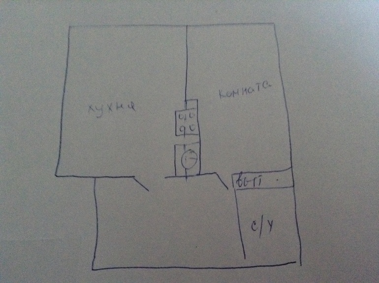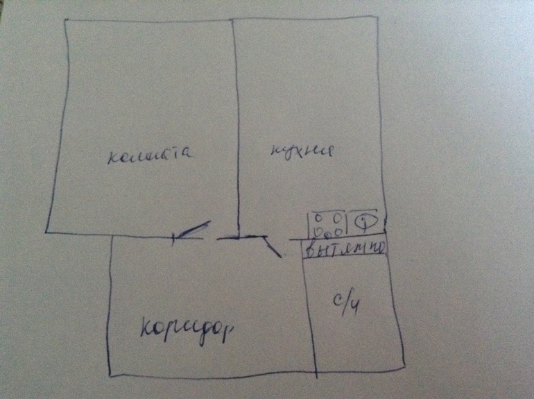 . Я знаю что переносить кухню в комнату нельзя, но если вот так? Ведь по плану бти кухня(плита и мойка)останутся на кухне...и внизу в этом месте еще кухня у соседей....