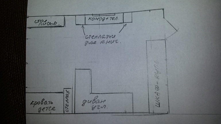 Нравиться, но ребенок подрастает, квартира в ипотеке поменять на двушку пока нереально. А так подумала ему будет детская в кухне, а в комнате сделать кухню-гостиную-спальню нашу. Нарисовала не совсем удачно, просто чтобы понять можно согласовать такое. А так комната 23 кв, а кухня 12кв