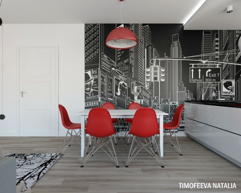 Дизайн 3 ком. квартиры для веселой и дружной семьи. Интерьер изначально планировался в скандинавском стиле, но в процессе работы оказалось что "чистый" сканди это не совсем то чего хочет хозяйка квартиры. В результате чего, мы внесли нотки современного стиля, немного глянца, и ярких цветов.