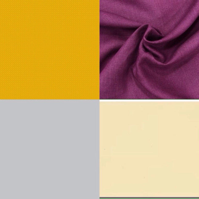 Я бы не делала баклажанного цвета. Для меня это сочетание были бы "вырви глаз". Я бы сдела тюль белый+серый+голубой