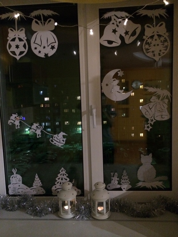 Очень красиво и сказачно прям. А на окна сами вырезали? Или купили? Ёлочка такая красивая!!! Чудесного вам Нового Года!! И спасибо,что заразили предновогодним настроением,а то совсем не чувствовалось праздника!!!!