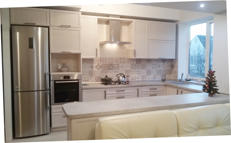 Такой классический рисунок будет перекликаться с плиткой пэч-ворк на противоположной стене кухни, как думаете?