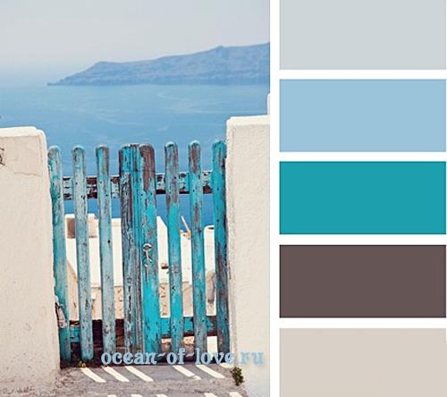 а вот здесь что-то среднее между бирюзовым и небесно-голубым + оттенки серо-бежевого (на второй стене). Потому что бирюзовый в чистом виде, как шторы Икеа Санела, порежет Вам молочный цвет напрочь. А такой нежный и тёплый поддержит.