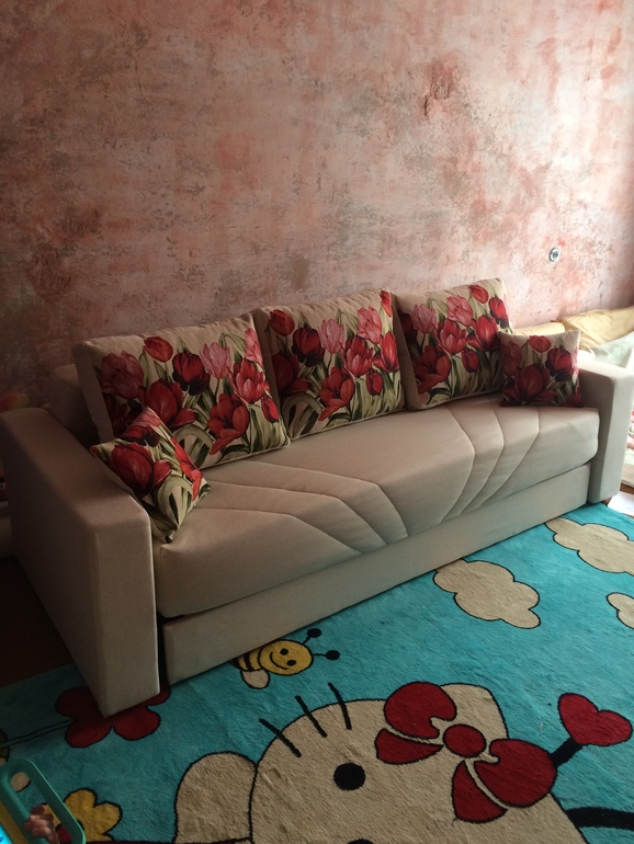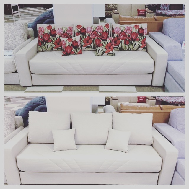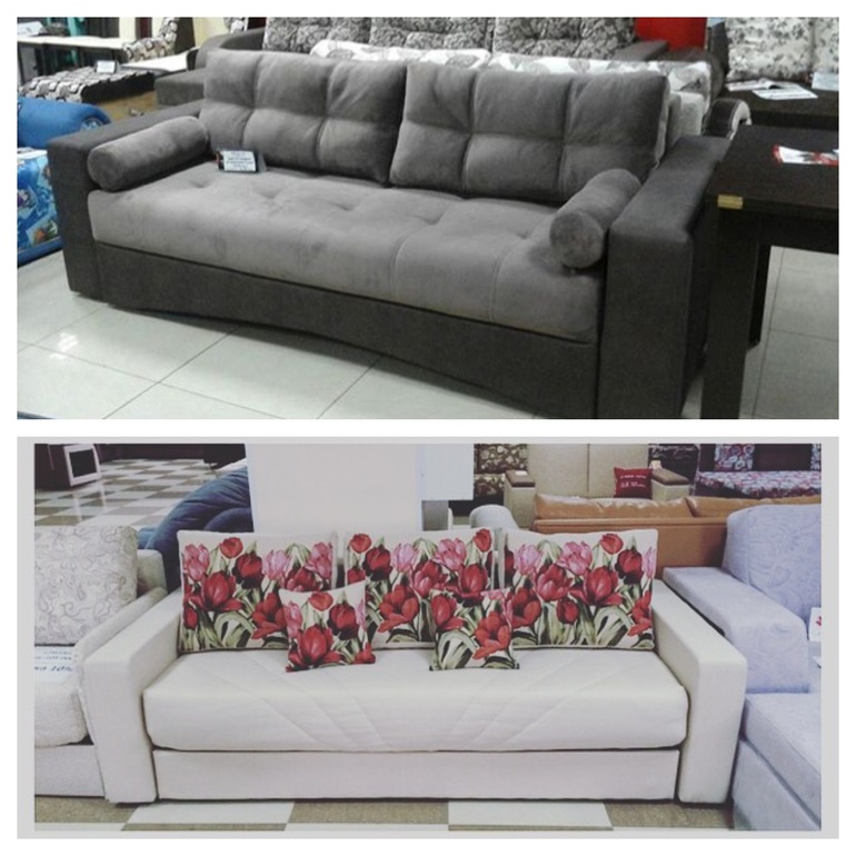 Влюбилась изначальна в светлый диван, железное основание, пантограф, пружинный блок, двухсторонне подушки.