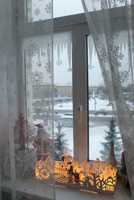 Красотища!!! С телефона плохо видно( это тюль такая со снежинками или Вы их наклеили?