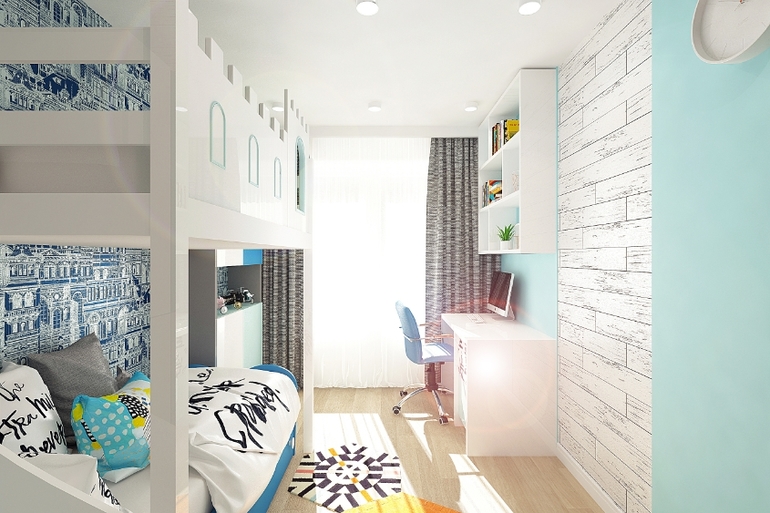 А я тем временем покажу еще один маленький проектик детской для двоих мальчишек) Из существующей мебели оставили только кровать-чердак. Все остальное разработано с нуля. Комнатка совсем небольшая 11 кв. метров, но несмотря на это нашлось место для вместительных шкафчиков и полноценного рабочего места. Для второго мальчика, который еще совсем маленький, так же предусмотрена рабочая зона. При необходимости парту можно расположить напротив окошка.