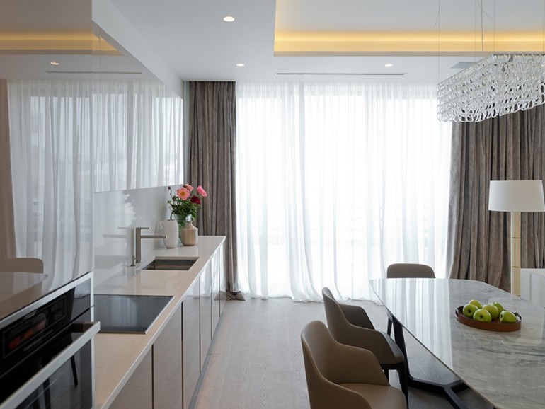 Дальше тюль. Какого цвета? какой формы? хотелось бы оставить свободный доступ к балконной двери. И как вешать, от стены до стены, или только над окном?