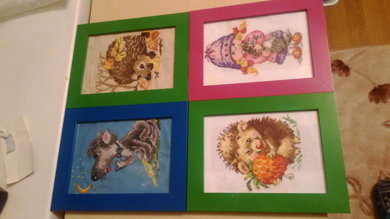 Из украшений планируются наклейки на стену ( с животными, есть еще с рыбками, но думаю это будет перебор. Покажу просто чтобы было), часы, наволочки на декоративные подушки и вышивки в рамочках