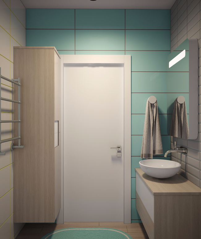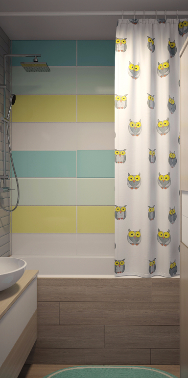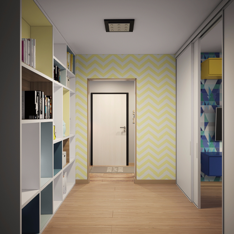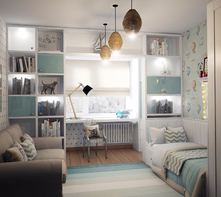 Заказчица, вообще, очень четко представляла себе, что хочет. Почти все эскизы утверждались с первого раза. Только с детской пришлось помудрить. Она, кстати, единственная - не в стиле 60-х. Решили выполнить ее в более классическом, спокойном стиле.