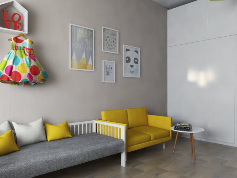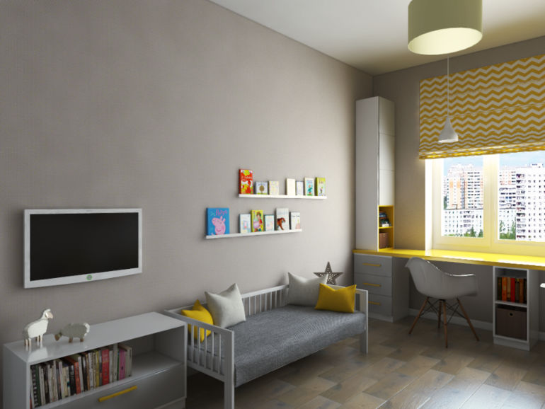Мне очень нравиться сочетание серого и желтого, но на мой взгляд не для детской, либо для подростка уже.