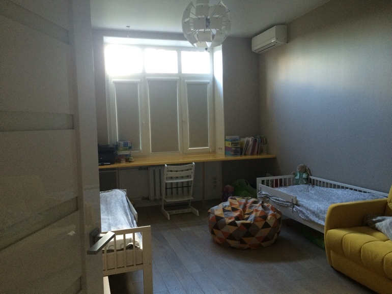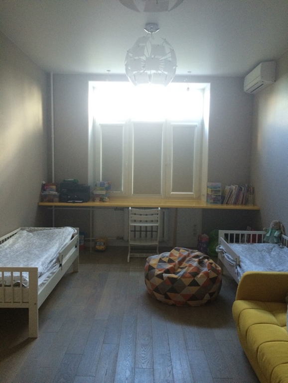 А мне очень понравился ваш проект, не знаю почему многие писали, что выглядит не по-детски. Вывалить пару мешков игрушек))) и будет вполне себе детская. У меня такая же планировка и площадь, но пока только один ребенок, второй в планах. Визуализацию я сама делала, шкаф тоже большой до потолка во всю стену, там есть часть для игрушек, пока под окном поставила диван. А стол хочу сделать из 2х парт стувы, чтобы там можно было всякие города из лего или брио строить, или рисовать что нибудь на большом листе или просто вдвоем играть и подходить к столу с разных сторон. Все свободное место это как бы игровая зона. Не знаю только куда ставить большие машины, которые не помещаются на полки, а вдоль стеночки все выставлять не хочу, но пока так стоят. На ваш проект посмотрела и тоже теперь хочу с желтым сделать. Может цвет стен поменяю и диван выберу желтый.