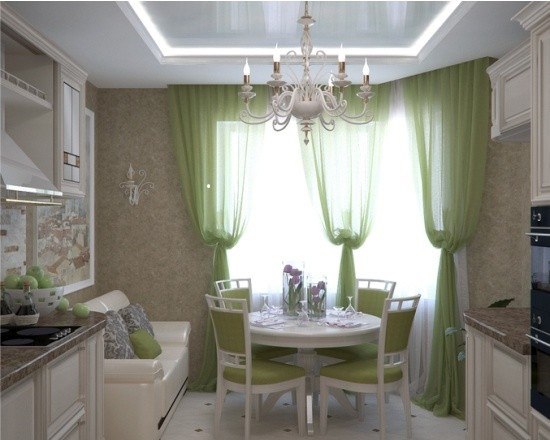 Интерьерное решение кухниДевушки.у меня такая планировка,будет натяжной потолок в кухне, подскажите, как сделать так чтобы шторы выходили из потолка.т.е.скрытый карниз...?