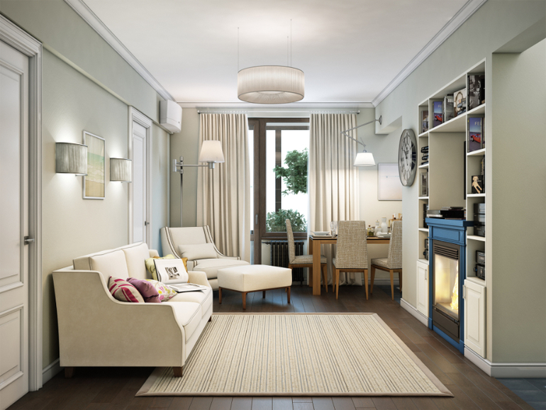 Авторские проекты дизайнеров.(Посты не по теме будут удаляться!)Комфортная квартира для пары в доме с историей. Задачей проекта стало создание комфортного и функционального дома. На небольшой площади в 44 кв.м. нужно было создать ощущение простора и свободы. На первый взгляд задача неразрешимая, так как кухня всего 6 кв.м., что для любой хозяйки уже на грани трагедии, а спальня шириной 2.13м.