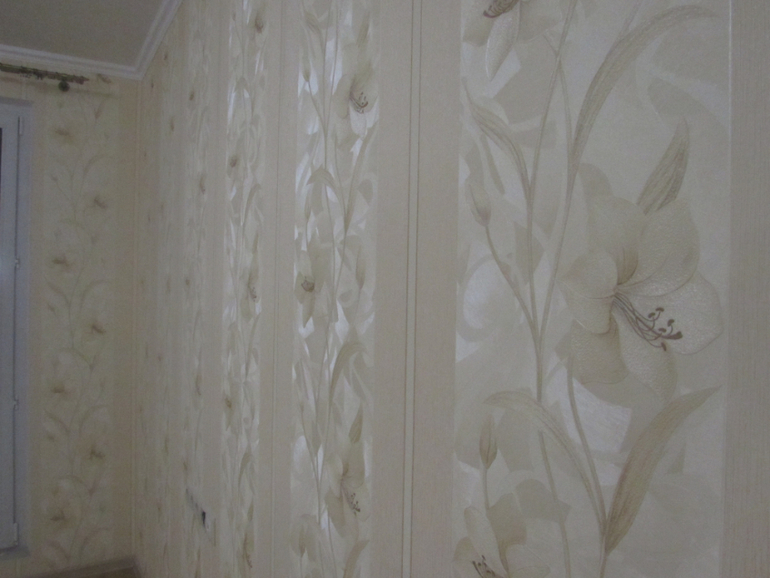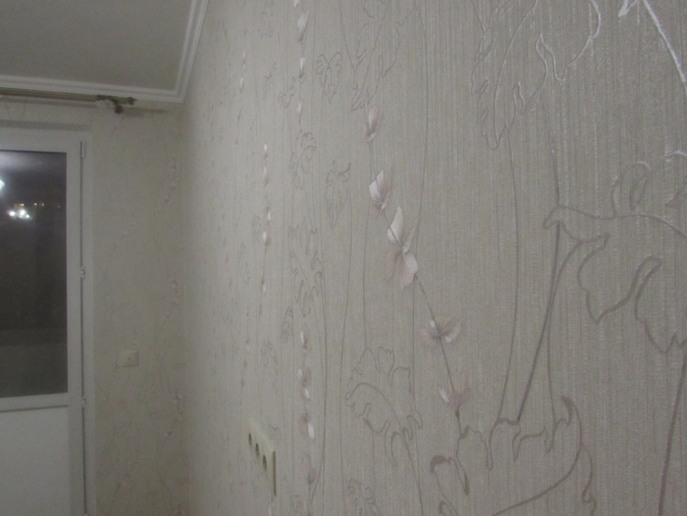 Это вторая комната и тут я вообще подвисла, это солнечная сторона и летом жарко, но за 5 тысяч я не могу торы купить, нужно что-то бюджетное. Совсем нет представления о цвете штор. Обои сероватые с розовыми нежными цветами. Может бордовые шторы?