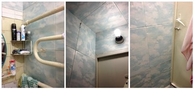 Мы плитку потолочную наклеивали, в ванне стены\потолок, и в туалете стены\потолок. Это листы пенопласта 50*50, рублей по 7-10 за штуку. Наверно непонятно, но название этой хрени не помню)) в ванне голубую, в туалете зеленоватую, а так они обычно белые, ассортимент большой. Клеили жидким клеем прозрачным, рублей по 100 за 0,5 прямо на штукатурку и старую краску, в общем что там на стенах и потолке было. Ничего никогда не отваливалось и даже не пыталось. Недорого и симпатично. Тряпкой мокрой всё отмывается легко. Если заинтересует, могу фотку поискать своей ванной в сьемной квартире.