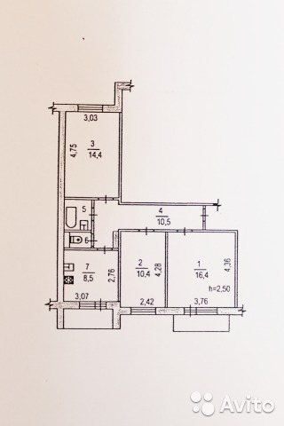 Я бы объединила кухню с комнатой 10,4 и сделала кухню-гостиную