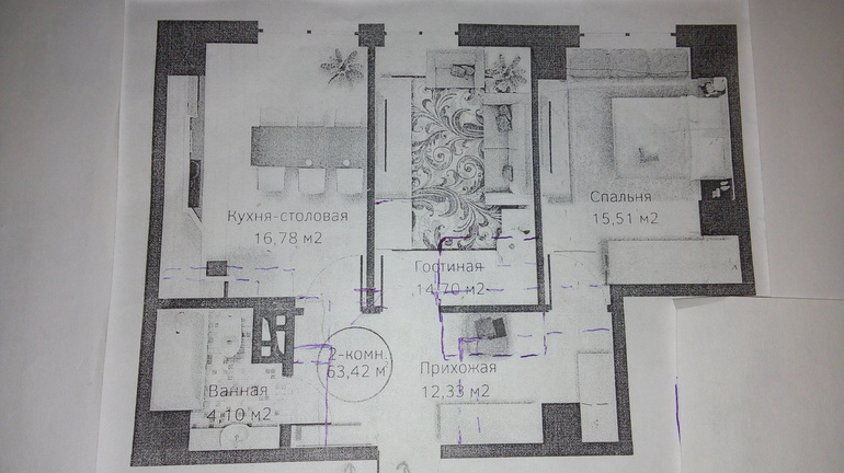 Помогите, пожалуйста, советом. Купили квартиру, площадь 63,42 м2. Планировка свободная, без стен. Отгорожена только коробка санузла.