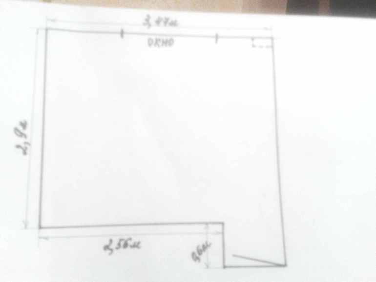 У нас там вентиляционный выступ большой 60см сразу от двери и ставить с той стороны пенал или холодильник мы не стали. По той же причине сделали закругленный угол,чтоб не набивать синяки. А вот где вы увидели скошенный угол я не поняла.....Навесной и мы заменим на прямой на 40 см.