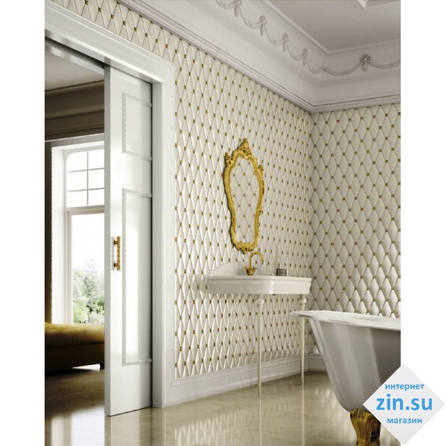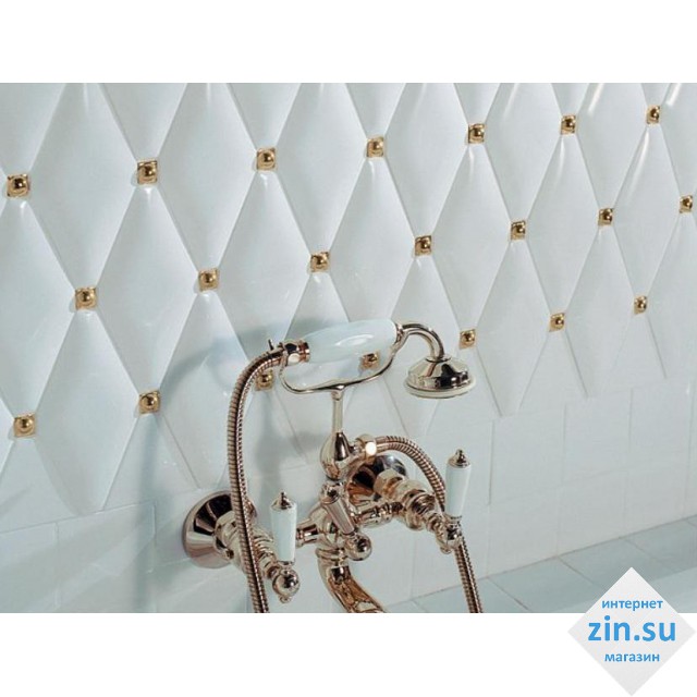Самое лучьшее решение для малького совмещенног санузла или ванной комнаты - это белая выпуклая 3Д плитка ромбом из коллекции ЗИН СУ (ZIN.SU). Объемная плитка ромбом расширяет объем маленькой ванной комнаты в два раза, делает светлей, уютней, а золотые вставки придают дорогой царский вид. Посмотрите фото маленькой ванной комнаты из плитки ромбом.