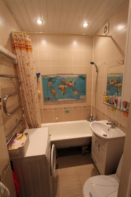 у нас зеркально))) и тоже машинка стоит)) расстановка таже))) только полотенцесушитель у стены где унитаз) а почему политическая карта мира?