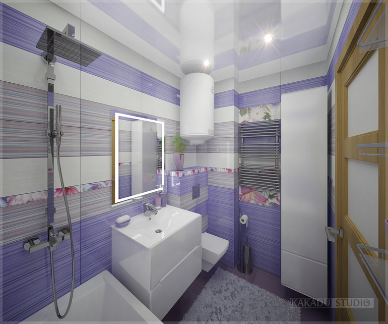 Мы в хрущевке совмещали раздельный. В итоге очень классно вышло. Могу фото на почту выслать. Вход посередине - слева ванна, справа стиралка и санузел. Слева низ зеленый, верх белый. Справа низ оранжевый, верх белый. Шкаф полностью оранжевый. Есть два вида бордюров и вставки соответствующей коллекции. Плитка подмосковной фабрики Сокол. Коллекция Коктейль-Зоопарк. Ванная вышла яркая, сочная и веселая. Нам всем нравится. Датчик движения включает свет, но у них есть таймеры и они через какое-то время этот свет выключают. У нас стоял - потом отключили его. Не удобно. Лучше выключатель опустить на уровень 90-100 см от пола, чтоб даже ребенок достать мог. У нас потолок реечный с 6 светильниками светодиодными встроенными - очень светло и хорошо от них. За год ни один не перегорел. 3 над ванной, 3 над унитазом. У них стоит матовое стекло, так что свет глаза не режет, но очень светло. На прежней квартире стояло две лампы - одна над входом, вторая над ванной... было гораздо темнее и в ней лампочки изза влаги перегорали 3-4 раза в год. Хоть светильники и были для влажных помещений. Всё время горела подсветка зеркала, чтоб хоть как-то светлее было. А сейчас вообще её включаю...