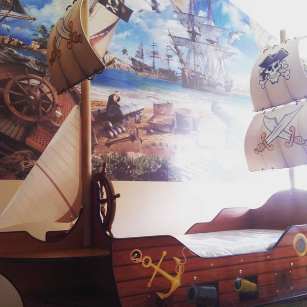 Кровать маквина мы уже купили, но это не очень интересно, там только колёса на месте крутятся и фары включаются, а ну еще мы кожаный салон заказали, сын это оценил...корабль у старшего покруче смотрится...