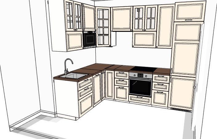 Пытаюсь уместить встроенный холодильник, встроенную микроволновку, ПММ 45см, волшебный угол, мойку, вытяжку - угольный фильтр, т.к. в доме принудительная система вентиляции и самое для меня сложное, разместить телевизор, чтобы его было удобно смотреть из-за стола (который будет естественно в углу). Вариант повесить над мойкой уже был, не нравится, что второй человек всегда сидит спиной. Поэтому в предпочтении разместить его на стене, которая 2.89м. Сейчас в моем плане он находится под шкафом на 60 см, слева от плиты (сам небольшой, высота 39см ширина 55см).