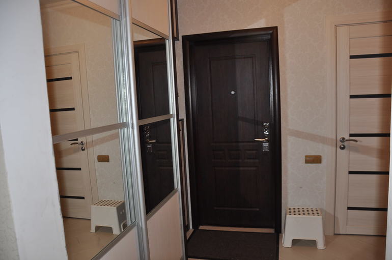 А мы увидели в торекс белую дверь с зеркалом и влюбились.Сначала купили ее, а уже потом подбирали под нее межкомнатные. Очень удобно посмотреть на себя перед выходом. Правда ребенок ее постоянно трогает, отпечатки стираю по несколько раз за день, но это секунды. Попробую фото загрузить