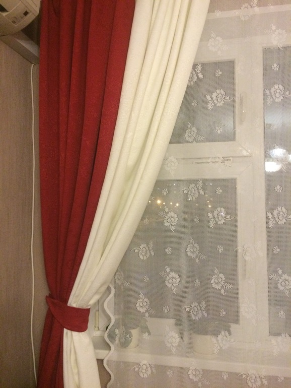 шторы Икея, не сшиты, просто купила 2 одинаковых комплекта , одни красные, другие белые, висят на одном карнизе, ширина одной шторы 145 см.