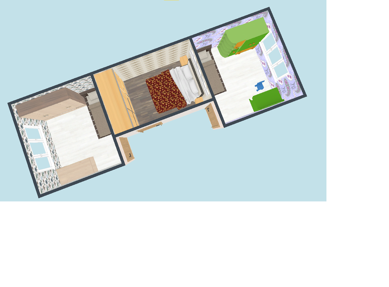 все кровати длиной 2 метра, конечно мебель поставила аскетично, но мне хотелось довести смысл задумки.