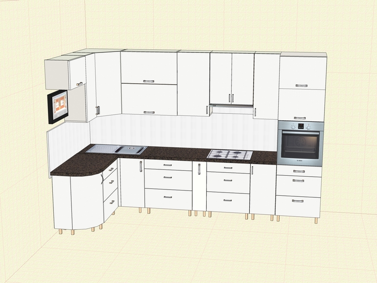 Попробую расчертить свою кухню по вашему примеру. У меня вот только плита газовая и вытяжка должна быть выше, чем остальные шкафчики. Если будут у меня вопросы по ходу моего личного проектирования, можно задавать?